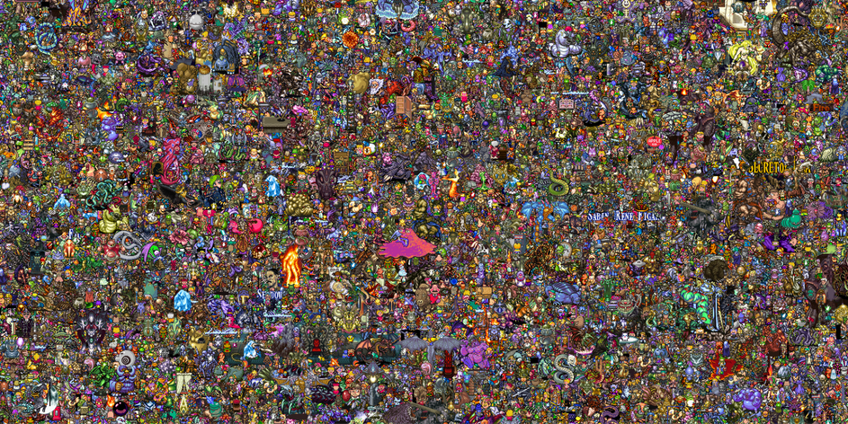 The games back then had a certain visual charm to them, and no where is that captured better than in this image featuring over 13,000 SNES characters in sprite form. It's like a Wear's Waldo of some of the world's most beloved characters.