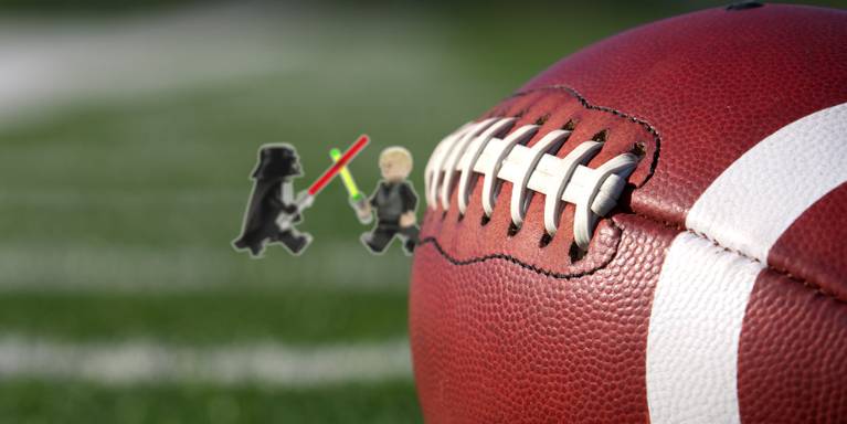 Feature Image Credit: American Football Close up on Field with yard lines in the distance via Shutterstock, Lego Star Wars minifigure Darth Vader and Luke Skywalker are fighting with sword via Shutterstock