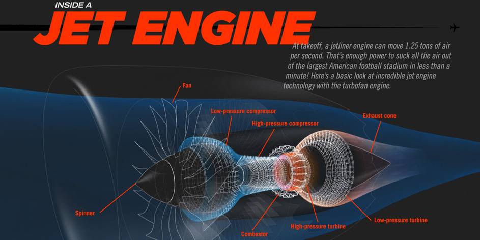 Check out this awesome animated infographic that breaks down how a jet engine is able to generate its power. After looking it over, you'll have at least a basic understanding of how a jet is able to generate speed. Next time you need whip out some random knowledge with your friends, you know who to thank!