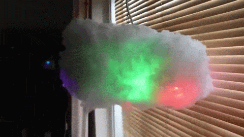 Here's a demo video of the finished project. I've implemented a few different modes so far, from the standard lightning to a trippy acid cloud and a colour fading mood lamp, which can be chosen from the remote control.