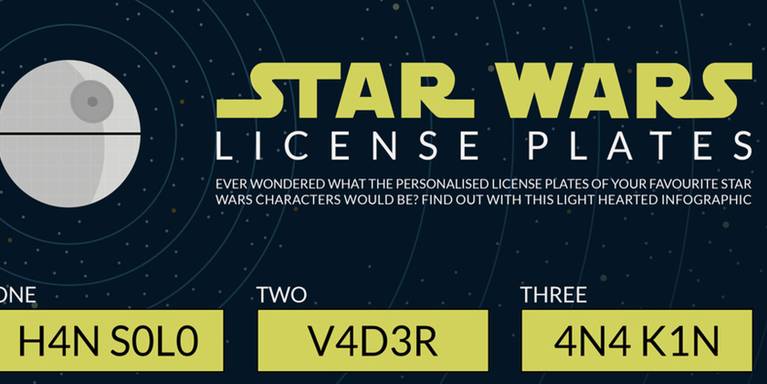 If your favorite Star Wars characters were to hop into a car and drive like the rest of us, what kind of car would they drive? Actually, that's not the important question. No, the important question is what would their license places be? What kind of vanity plate would Hans Solo have on his car? How about Darth Vader? Take a look at the fun infographic below and see if you can figure out which character gets which plate.