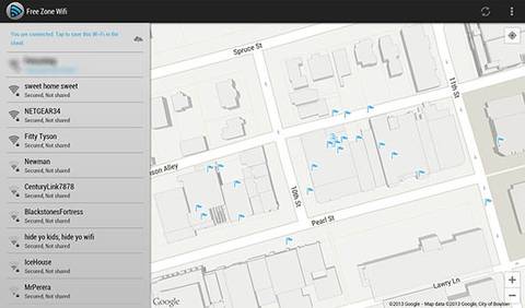 Teach your Android device the precise location of millions of free WiFi hotspots. Free Zone WiFi is an Android app that includes a map, showing you where you can find a free WiFi connection anywhere you happen to be on the road. You can even set the program to automatically connect to any and all free WiFi connections, perfect if you're got a data plan you'd rather avoid using or even none at all.