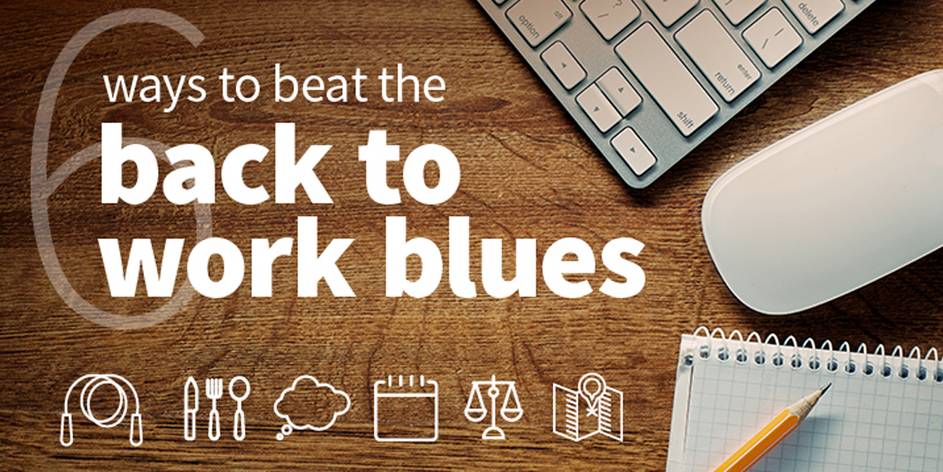 What can you do to beat the back to work blues? Is there anything you can do on your break that will make the return less painful? As it turns out, there is! Check out the infographic below for some useful tips that will make your work return much more pleasant. Next time you take a vacation, you just might find that going back to work isn't the worst thing in the world!