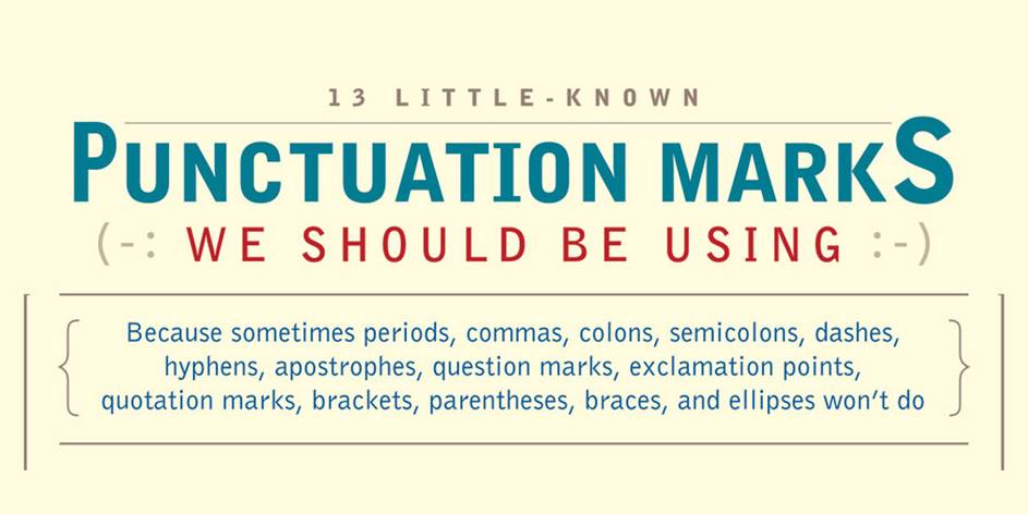 You know the question mark, exclamation point, and period, but have you heard of the love point? How about the acclamation point? If you haven't, the infographic below will introduce you to each one, and they'll even tell you how to enter them on your computer.