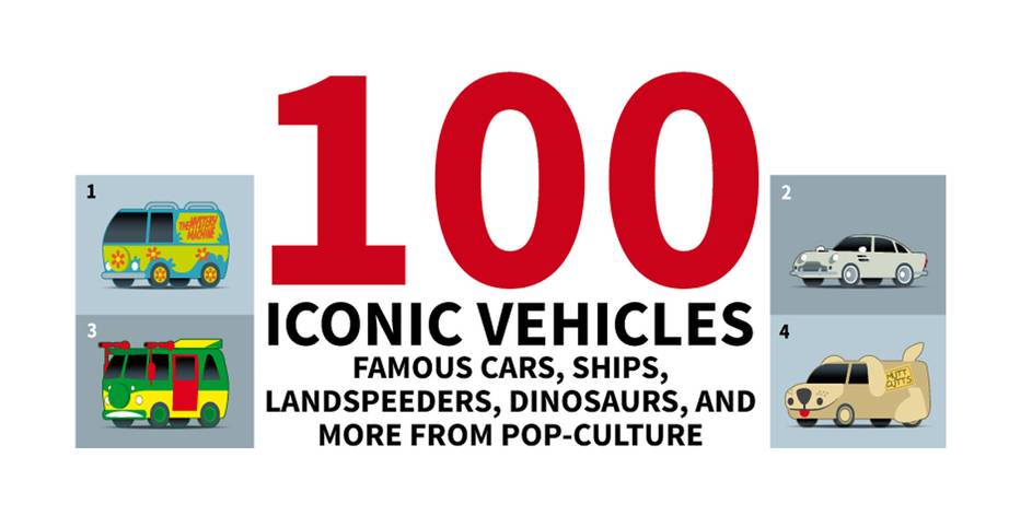Scooby Doo, the Teenage Mutant Ninja Turtles, Star Trek, and so many other pop culture phenomenon have produced iconic cars, vans, and spacecraft. Can you identify all 100 vehicles in the infographic below without looking at the answers?
