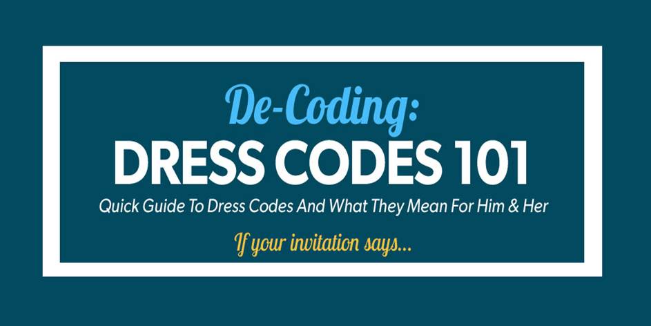 Have you ever been called to a meeting for work and told to dress in a certain dress code? Has anyone ever invited you to dinner and told you to wear business casual clothes? Understanding all of the different dress codes can be confusing. There's more to it than just just dressing up or dressing down. In fact, there's a shocking level of fine details between the different types of dress codes, as outlined on the infographic below!