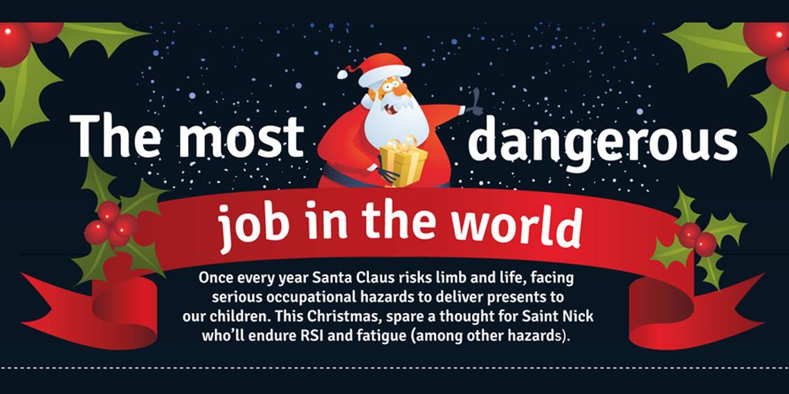 One person holds the single most dangerous job anywhere. That person's name is Santa Claus. He travels around the world at a speed that is difficult to comprehend, delivering toys to children the world over. Just think about the risks he's taking!